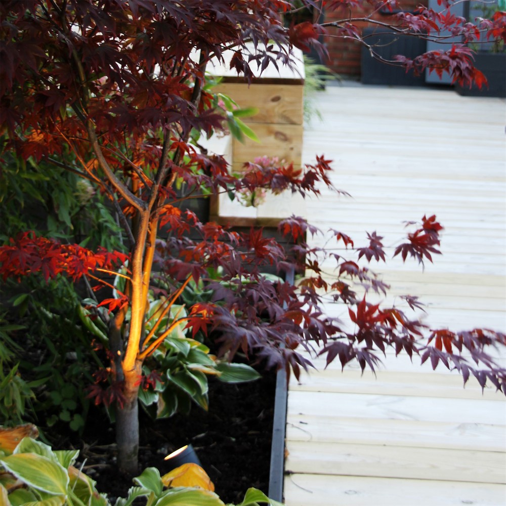 Lamporna avger ett varmvitt ljus som skapar en behaglig atmosfär och har en balanserad ljusspridning, perfekt för att belysa små till medelstora träd, buskar och ljusgenomsläppliga växter. Placera lampan centralt i växten för att skapa en magisk effekt med ljus och skuggor. För breda eller låga träd rekommenderas två lampor för en jämnare belysning.