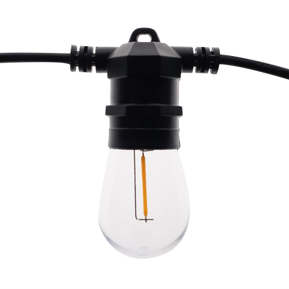 Med partyslingan Cosys varma mjuka sken sätter du stämningen i din utemiljö. Slingan är 5m lång, har 10 ljuskällor och kopplas enkelt in i någon av våra kablar. Vill du ha en längre slinga – koppla flera Cosy efter varandra upp till totalt 6 stycken ljusslingor, vilket kan ge en totallängd på 30 meter.