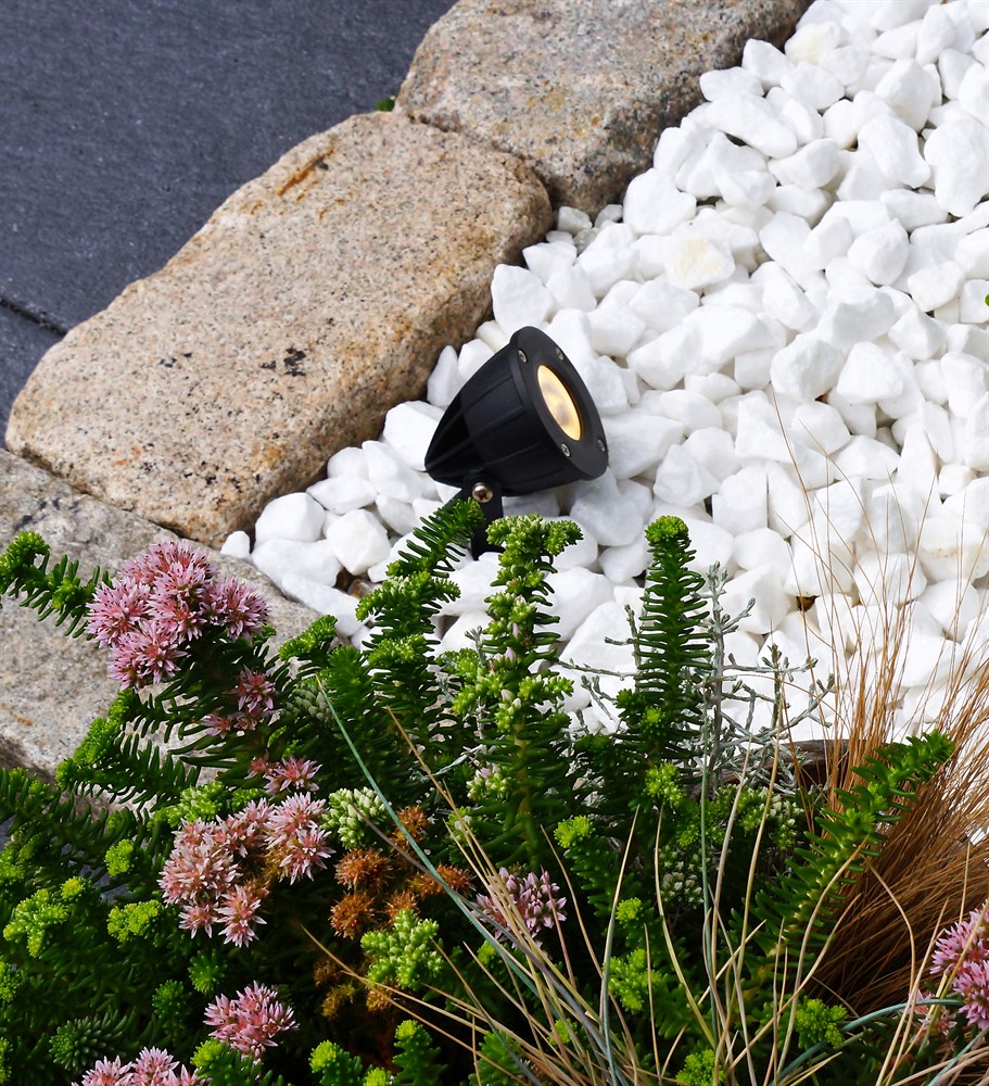 En lampa med en smal ljusspridning som passar till träd där stammen ska framhävas, alternativt där du vill att ljuset ska nå hela vägen upp i toppen på exempelvis höga tallar och björkar. Luminus är också spännande att använda för att få pelarljus mot fasad, stolpar på pergola och portaler. Om du vill belysa ett smalt och tätt prydnadsgräs eller en rosenbuske inifrån är Luminus också det naturliga valet.